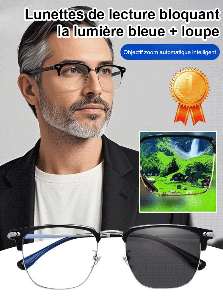 Lunettes de presbytie à zoom automatique avec protection anti-lumière bleue