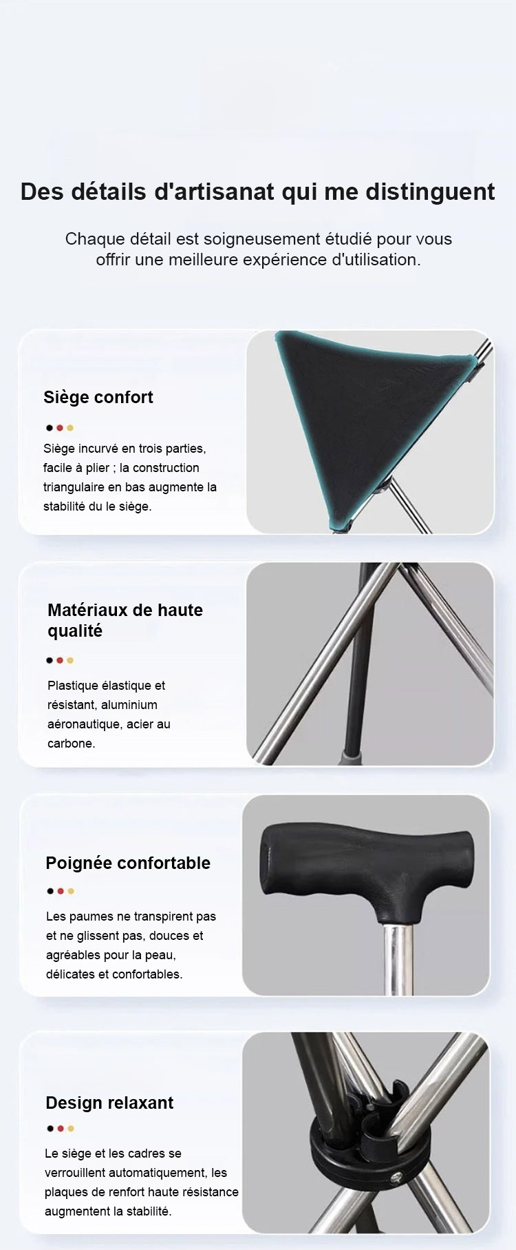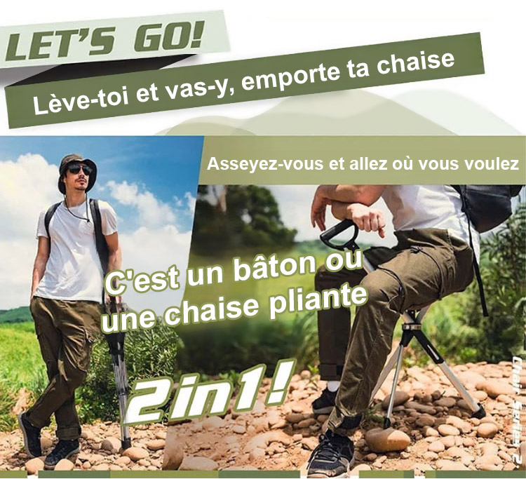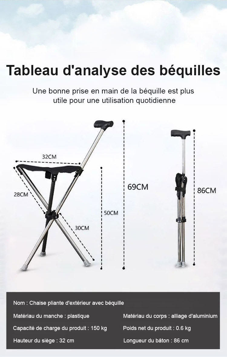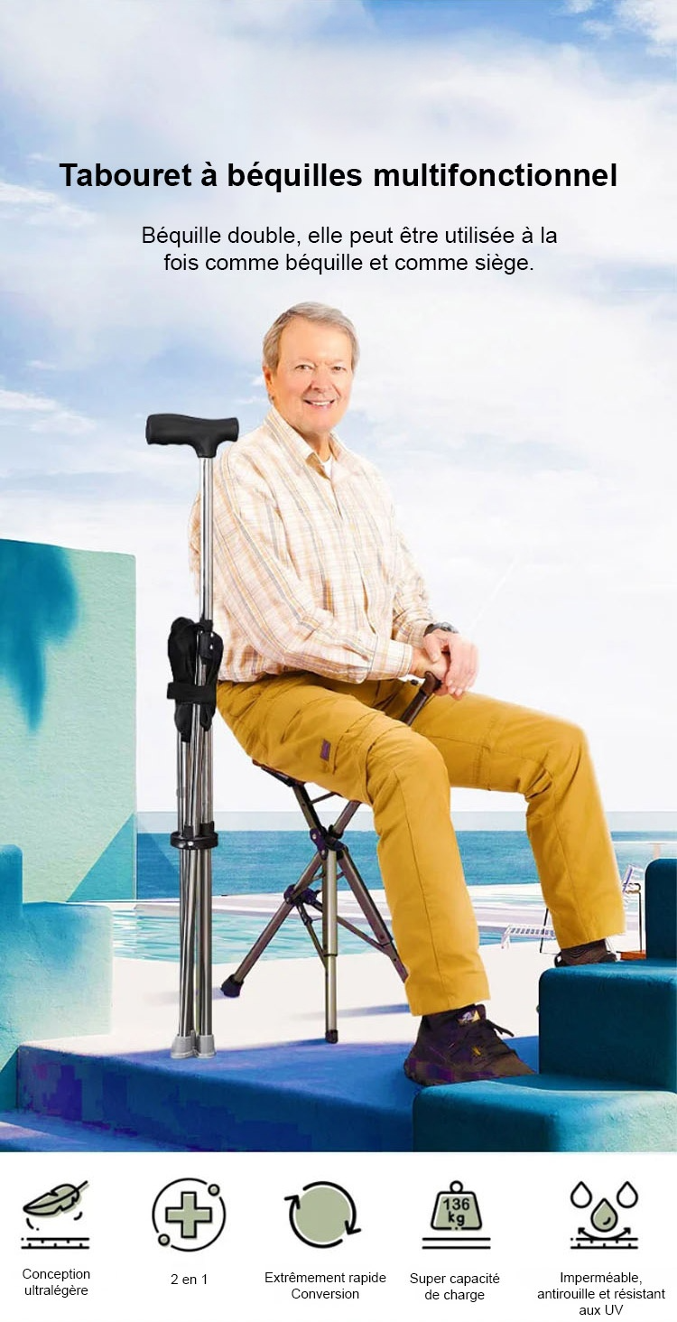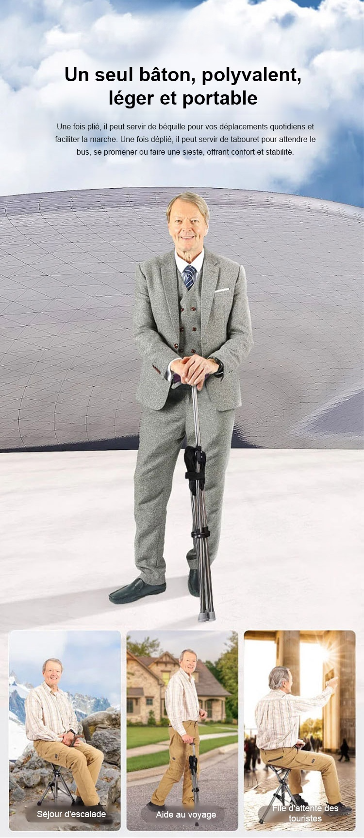 Un must pour les personnes âgées de plus de 40 ans, déplié comme un tabouret, plié comme un bâton de marche!
